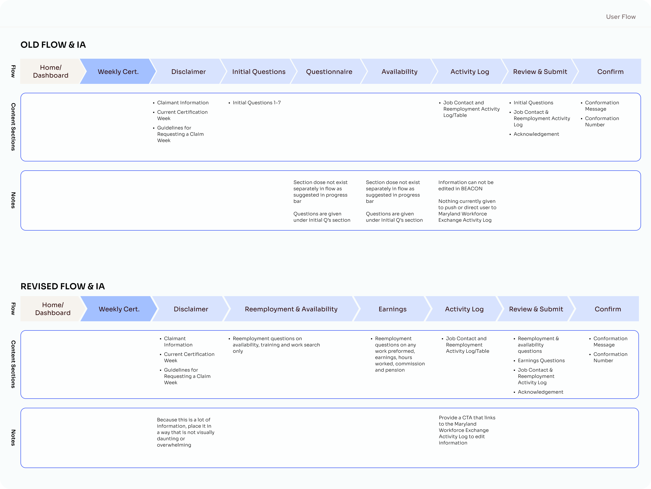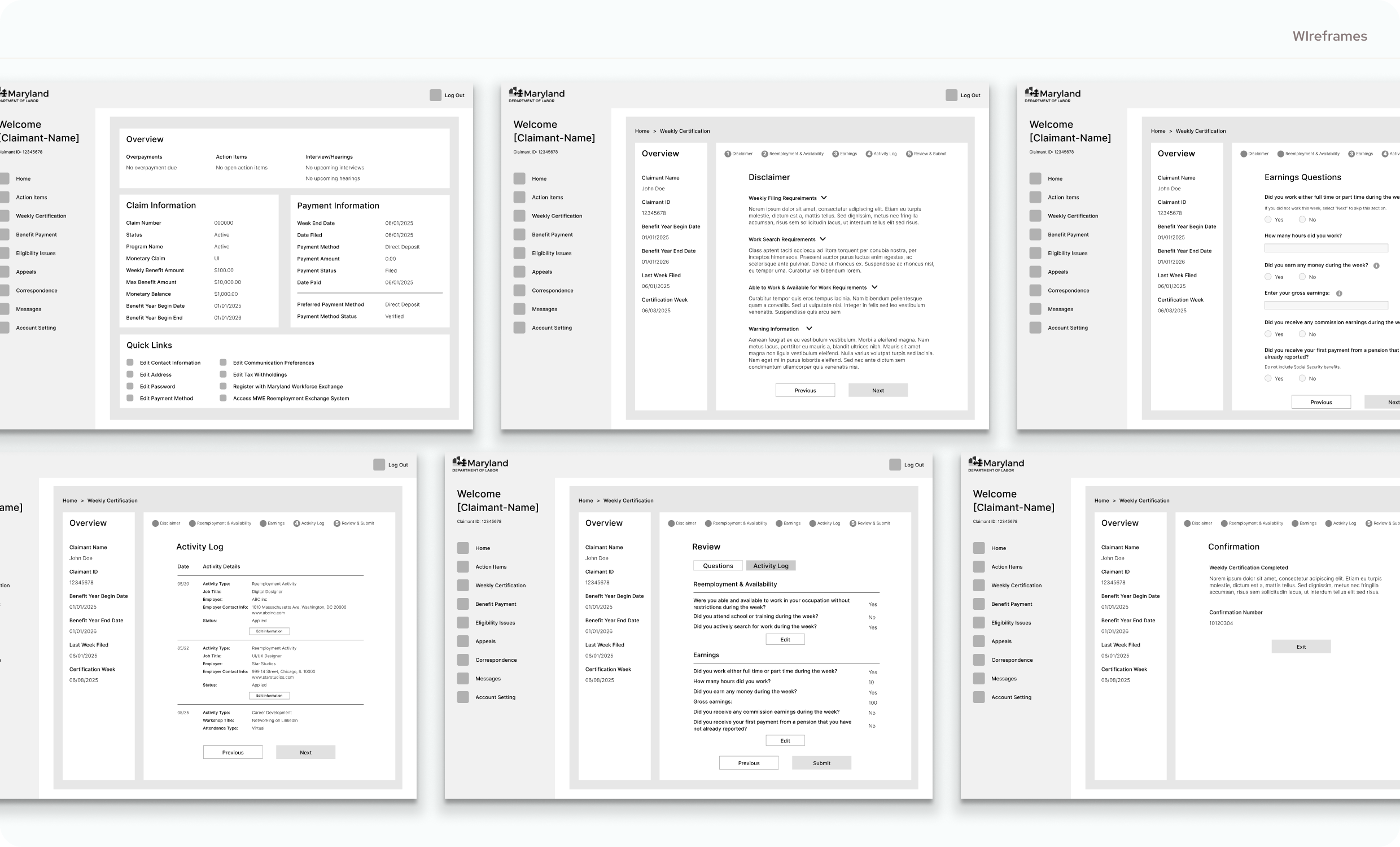 Looking for work post-layoff introduces you to a lot of tools, sites, and interfaces that you get very familiar with, very fast. One of those platforms for me was the Maryland Department of Labor Unemployment Insurance BEACON system. From registration to weekly certifications, it became clear quickly that this was a platform that could use some updates. It's clunky, confusing, and all over the internet, people expressed their frustrations. So as a designer, I figured, who better to reimagine and refine this process?