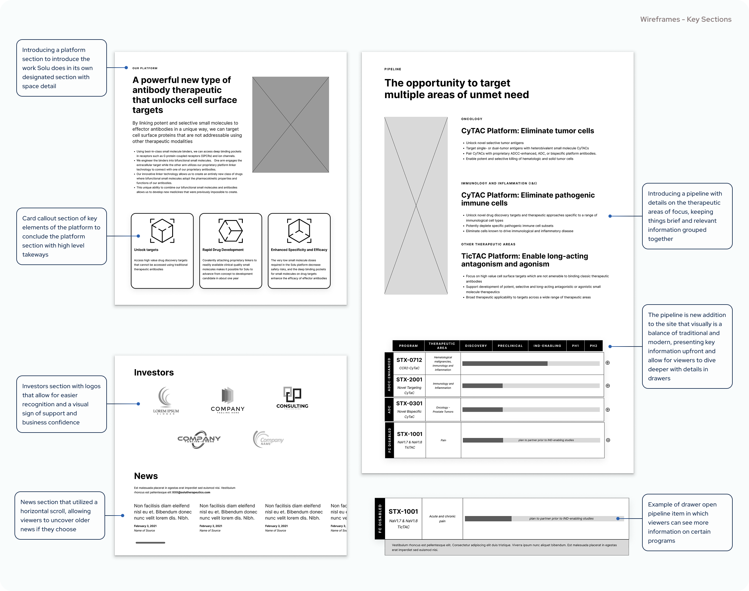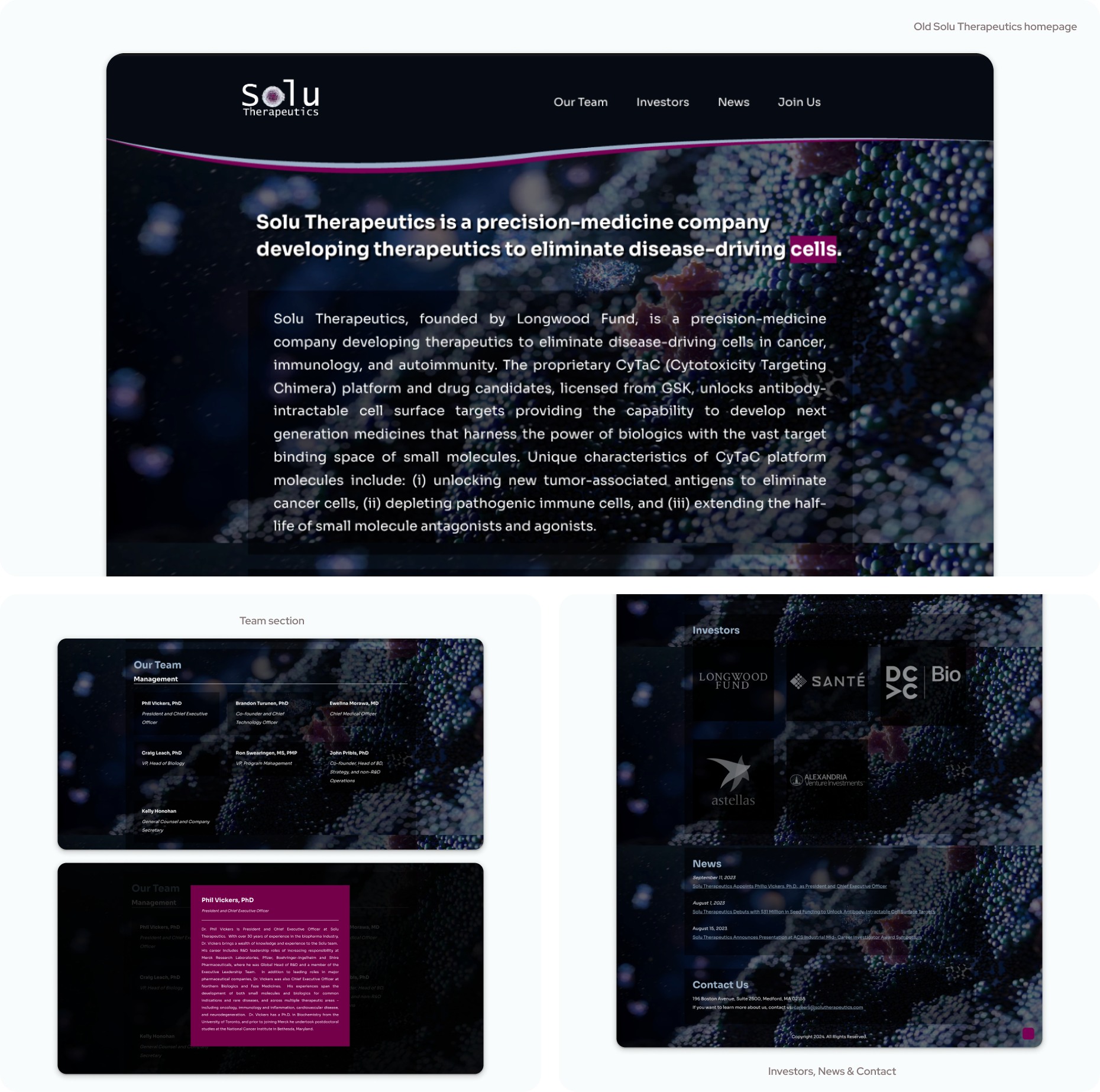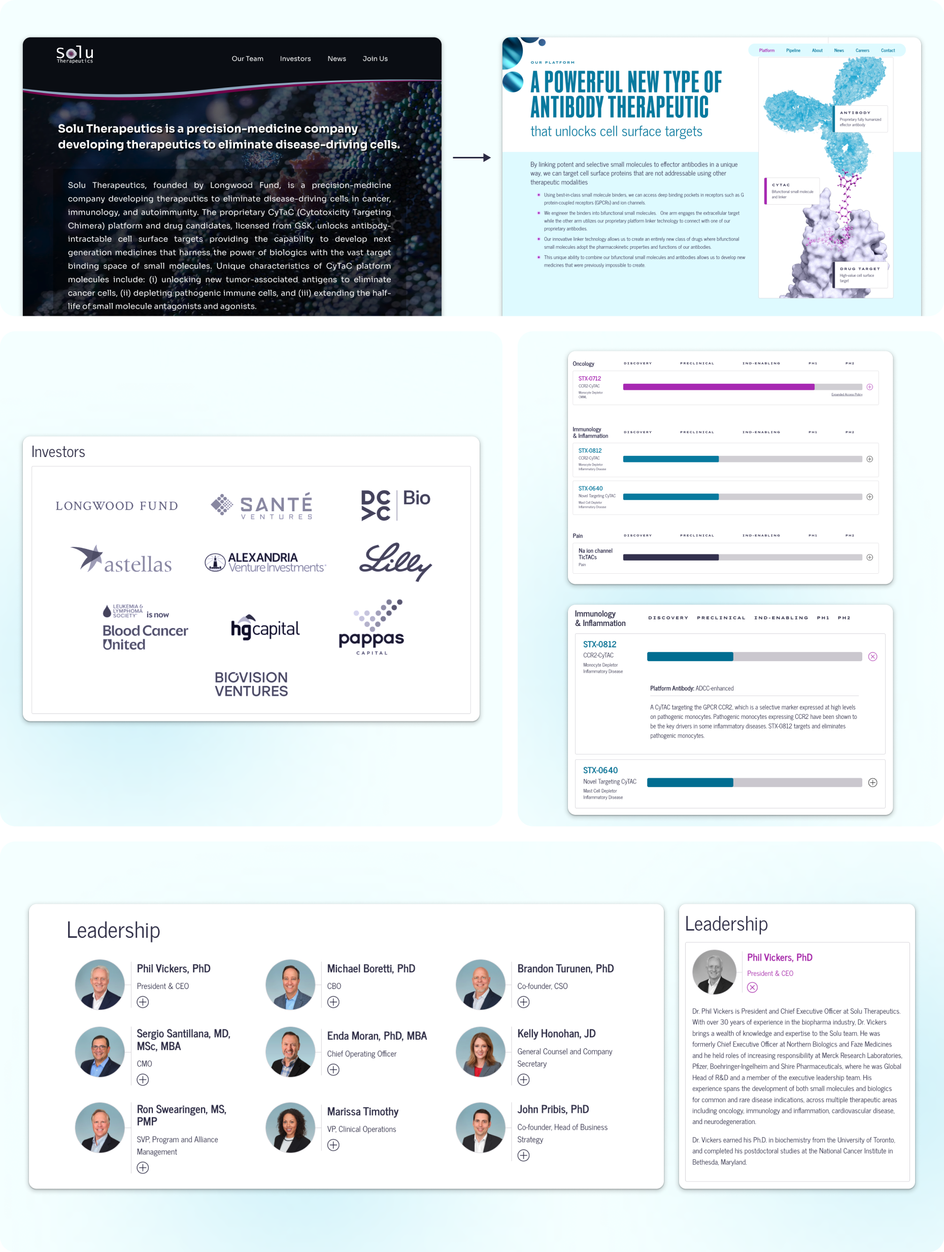 The final site presents information on their platform, the progress of their lead programs, and provides easily accessible and identifiable information that their key stakeholders are looking for. Investors, future hires, and fellow scientists/biotech companies can more easily discover Solu's areas of focus, the therapies being developed, and the status of different projects in which they could collaborate, work, or invest. As a result, Solu can confidently used their sites as an effective fundraising, collaboration and recruiting tool.