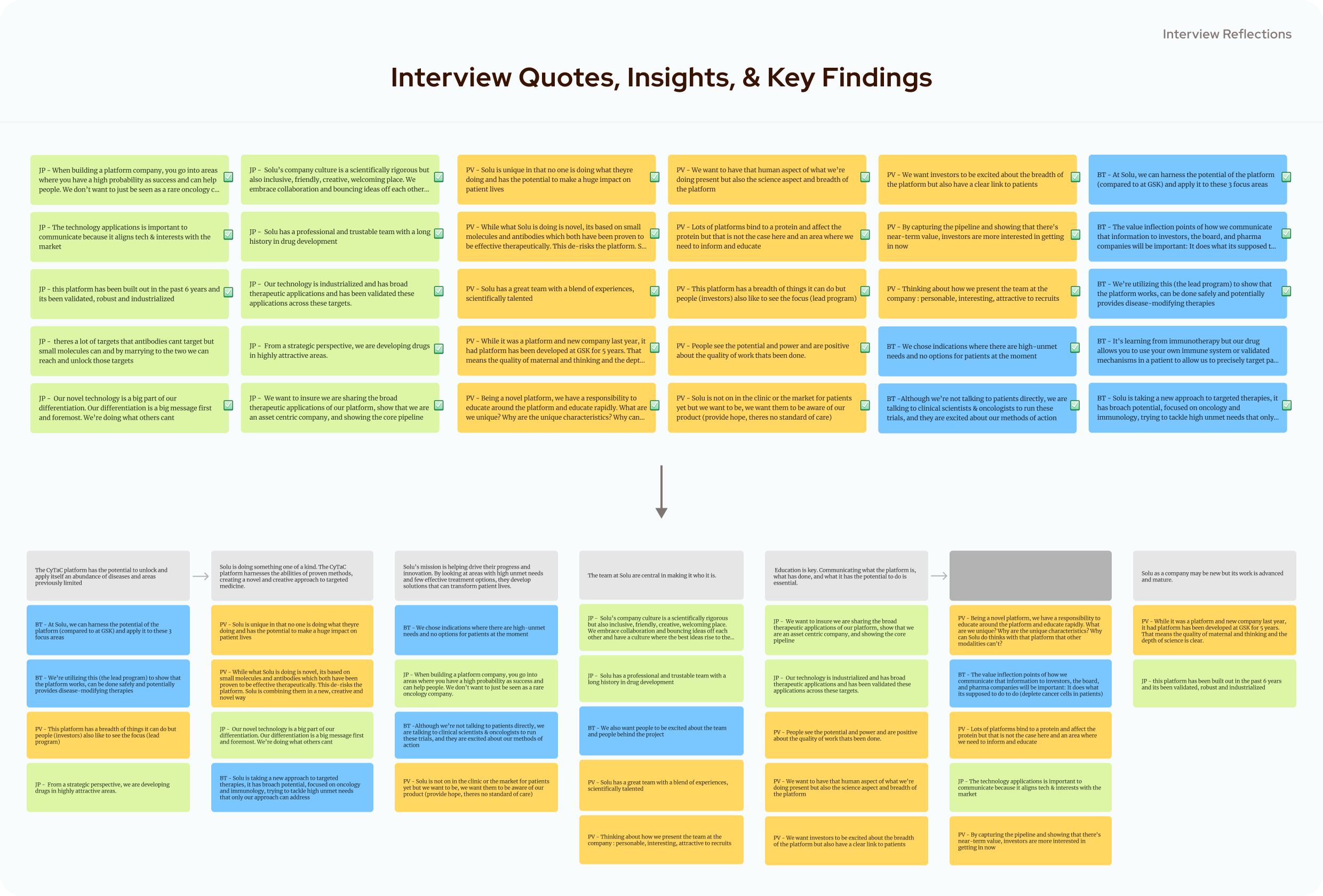 To start, I conducted interviews with several members of the Solu's leadership team, which helped define the business and science goals for the site. The goal of these interviews was to gain a better understanding of their science and technology, business style, company culture, and future plans in an effort to understand how best to deliver their message on the site.
